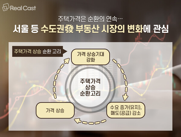 또한 상승기의 주택시장은 ‘수요자들의 가격 상승기대 강화’→’수요증가(유지), 매도(공급)감소’→’가격상승’ 등의 순환과정을 거친다고 국토연구원은 자료를 통해 말하고 있습니다.
