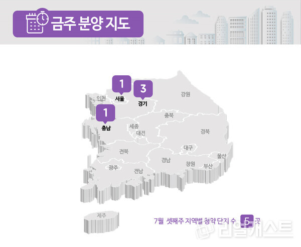 분양 물량이 2주 연속 줄어들며 7월 분양시장이 조용하게 흘러가는 모습입니다.