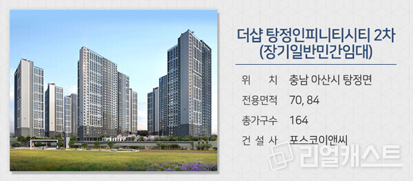 포스코이앤씨는 충남 아산시 아산탕정지구 도시개발구역에 짓는 ‘더샵 탕정인피니티시티 2차 장기일반 민간임대주택’ 임차인을 모집합니다. 최장 10년까지 거주할 수 있습니다. 수도권전철 1호선 탕정역 이용이 가능하고, 신설 예정인 초·중·고교도 가깝습니다.