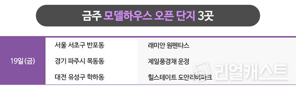 금주 모델하우스 오픈 예정인 곳은 수도권 2곳, 지방 1곳 등 총 3곳입니다.