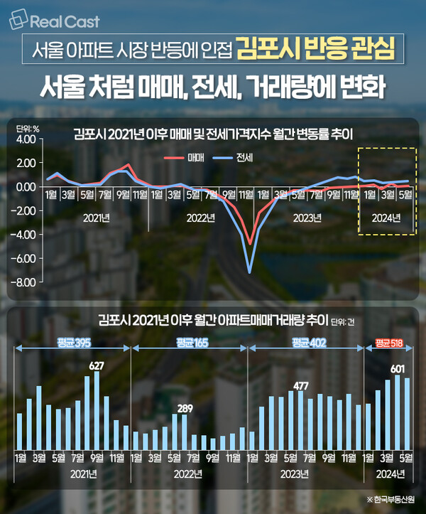 서울 이웃 도시 가운데 대표적인 곳인 김포시 아파트 시장의 최근 일련의 변화들이 서울과 닮아가고 있어 눈길을 끌고 있습니다.