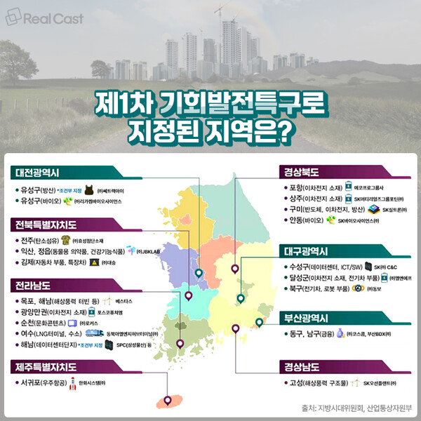 기회발전특구는 부동산시장에도 여러모로 영향을 미칠 전망인데요. 먼저 다양한 세제 혜택으로 지방으로 이전하는 기업 및 투자가 늘어날 전망입니다. 일례로 SK오션플랜트가 약 1조원을 투자해 경남 고성에 해상풍력 발전용 하부 구조물 생산기지를 건설 중이고, 전남 광양에서는 포스코퓨처엠이 1조2300억원을 투자해 2차 전지 소재 생산공장을 건립 중입니다. 산업통상자원부는 현재 착공에 들어간 투자 14조5000억원을 포함, 총 40조5000억원의 투자가 기회발전특구에서 이뤄질 것으로 예상하고 있습니다.