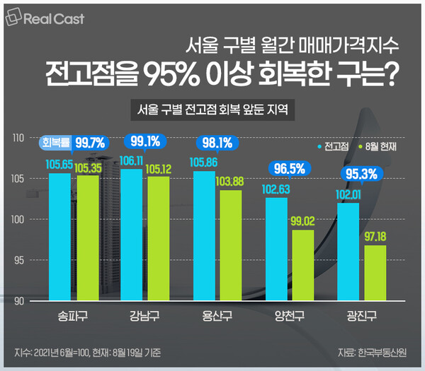 송파, 강남, 용산, 양천, 광진구 순 전고점 돌파 앞둬