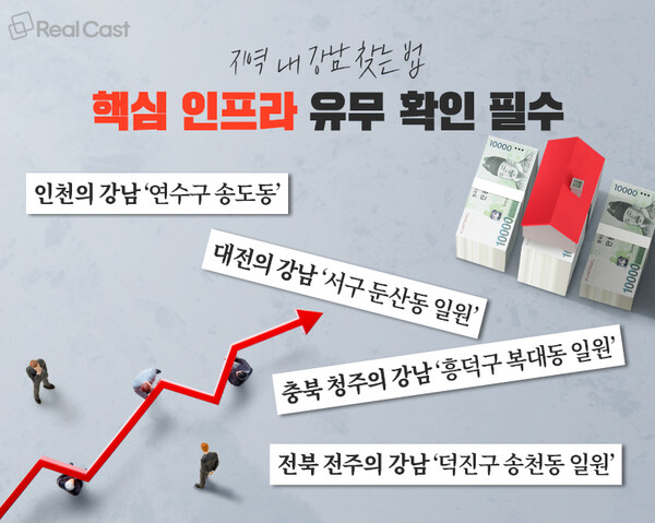 서울의 강남처럼 다른 지역에도 강남이 있습니다. 주거, 교육, 상업, 업무, 문화 등의 핵심 인프라들을 갖추고 있다면 ‘지역 내 강남’으로 불릴 수 있습니다.