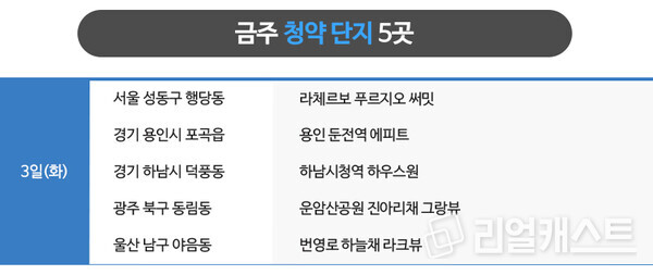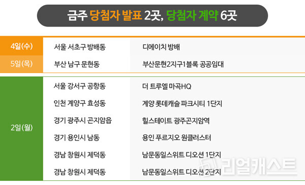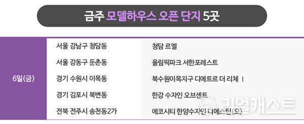 금주 모델하우스는 총 5곳이 오픈 할 계획이며, 이중 1곳은 사이버 모델하우스로만 오픈합니다.