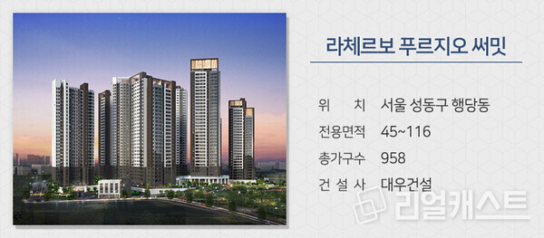 대우건설은 서울 성동구 행당동에 짓는 ‘라체르보 푸르지오 써밋’을 분양합니다. 서울지하철 2·5호선, 수인분당선, 경의중앙선 환승역인 왕십리역 역세권 아파트입니다. 행당초교, 무학중·고, 무학여고 등이 가깝습니다.