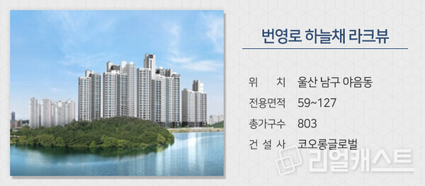 코오롱글로벌은 울산 남구 야음동에 짓는 ‘번영로 하늘채 라크뷰’를 분양합니다. 일부 세대에서 선암호수공원을 조망할 수 있습니다. 도보권에 선암초, 야음초교가 있고 옥동 및 대현동 일대 학원가도 이용하기 쉽습니다.