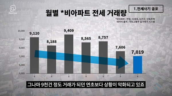 전세사기의 공포는 여전합니다. 빌라 거래량(실거래가 시스템)은 하반기 들어 7천여 건으로 대폭 감소했습니다. 그나마 9천건 정도 거래가 되던 연초보다 상황이 악화되고 있죠.
