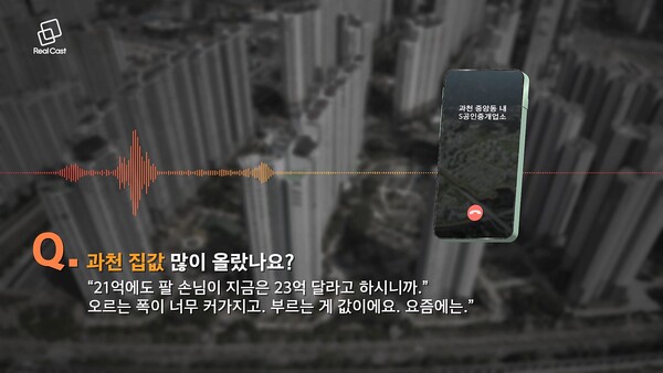 “21억에도 팔 손님이 지금은 23억 달라고 하시니까. 오르는 폭이 너무 커가지고. 부르는 게 값이에요 요즘에는. (서울이 오르니)전반적으로 다 올랐다고 보시면 돼요. 특히 과천이 많이 올랐어요”