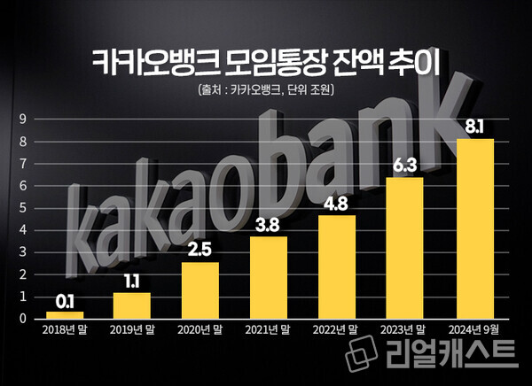 각종 모임 금융 편의를 향상시켰다는 평가 속 해마다 잔액이 늘어나며 지난달 27일 기준 카카오뱅크(대표 윤호영, Daniel)의 모임통장 잔액은 8조 원을 돌파한 것으로 나타났습니다.