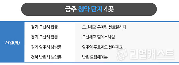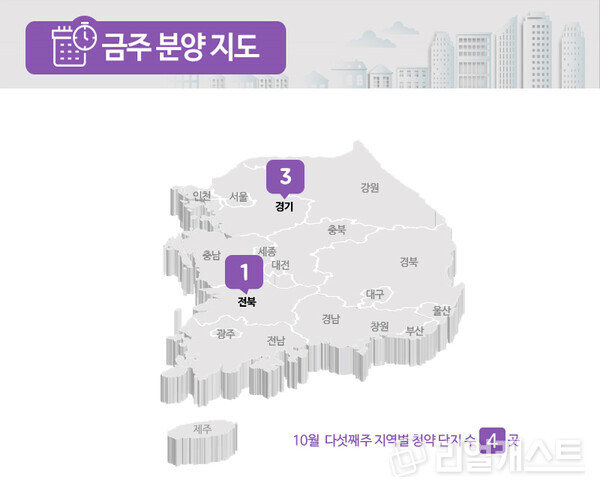 부동산인포에 따르면 10월 5주 전국에서 신규 청약 및 입주자를 모집하는 곳은 4곳, 총 3534가구로 집계됐습니다(총 가구수 기준).