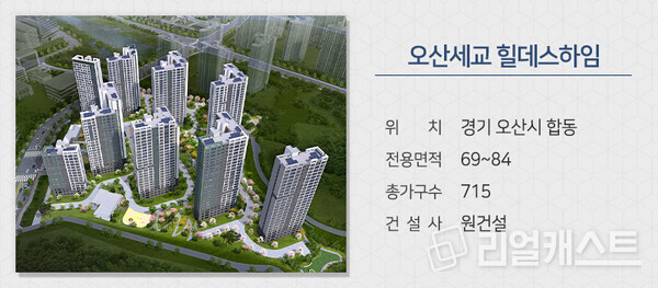 원건설도 세교2지구에서 ‘오산세교 힐데스하임’을 분양합니다. 오산역이 차로 10분거리에 위치하고 단지 옆으로는 상재봉이 있습니다. 인근에 근린공원도 조성될 예정입니다.