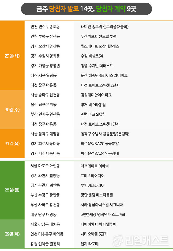 이외에 제일건설이 경기 광주시 곤지암읍에 짓는 ‘곤지암역 제일풍경채’, 포스코이앤씨가 울산 중구 학성동에 짓는 ‘더샵 시에르테’, 금호건설이 강원 강릉시 회산동에 짓는 ‘강릉 아테라’ 모델하우스를 오픈하고 본격적인 분양에 나설 예정입니다.
