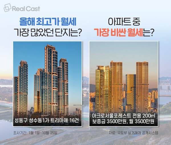 최고가 월세 계약 가장 많은 아파트, 가장 비싼 가격 모두 성수동