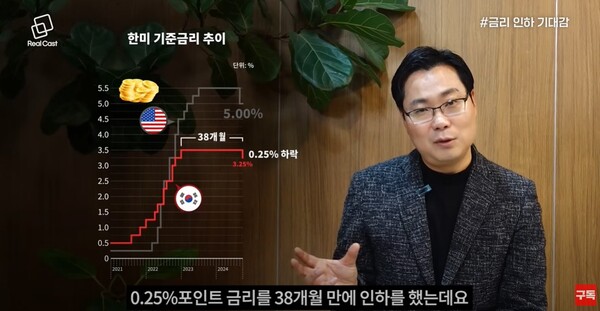 올해까지는 아마 한국은행의 기준금리 인하는 쉽지 않을 겁니다. 2024년은 3.25% 기준금리가 유지될 가능성이 높은데, 2025년 기준금리 두 번 정도 내리면 아마 대출금리 인하가 불가피할 것 같습니다.