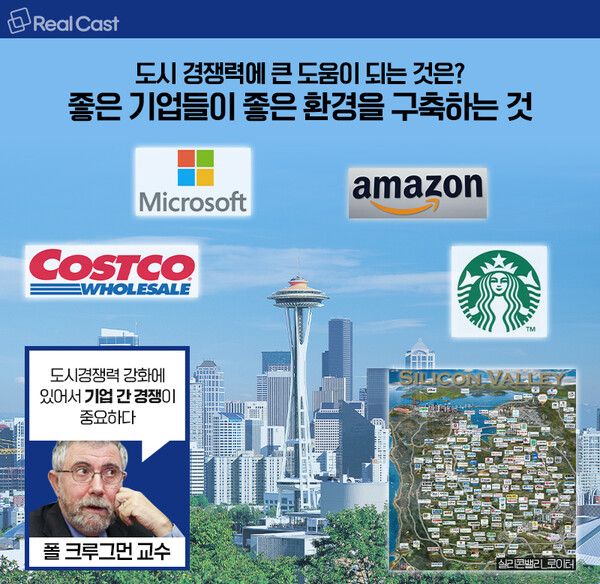 노벨경제학상 수상자이자 뉴욕시립대 교수인 경제학자 폴 크루그먼(Paul Robin Krugman)은 ‘도시경쟁력 강화’에 대해서 “도시는 하나의 개체로서 서로 경쟁할 수 없어서 도시간 경쟁 보다는 기업간 경쟁이 더 중요하다고” 말했습니다.