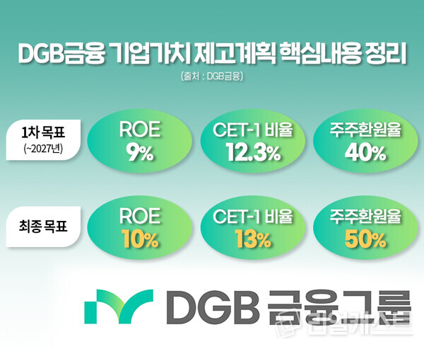 DGB금융 관계자는 “금번 발표한 밸류업 핵심지표를 중심으로 재무계획을 철저히 수립해 밸류업을 성실히 이행할 것”이라며 “앞으로 주주가치 향상을 위한 주주친화정책과 책임경영을 적극 실천하겠다”라고 밝혔습니다.