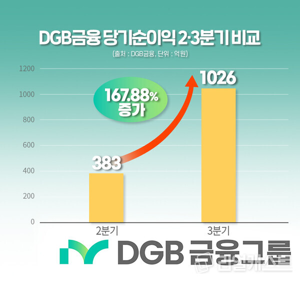 DGB금융그룹(회장 황병우, 이하 DGB금융)은 3분기 누적 지배주주지분 당기순이익 2526억 원을 달성한 것으로 나타났습니다.
