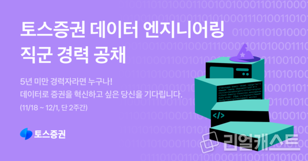 토스증권(대표 김규빈)이 오는 18일부터 2주간 데이터 엔지니어링 직군의 공개채용을 시작한다.