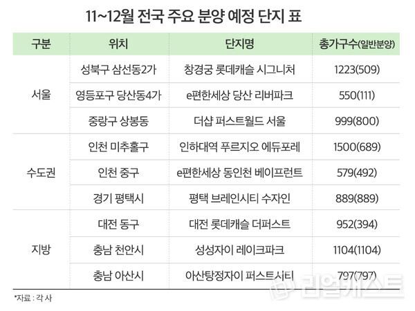 ■ 11~12월 주요 유망 단지에 수요자들 주목