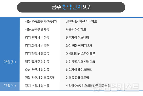 분양물량은 전주(8395가구)보다 더 늘었습니다. 권역별로 수도권에 6곳, 지방에 2곳이 분포하고 있습니다.