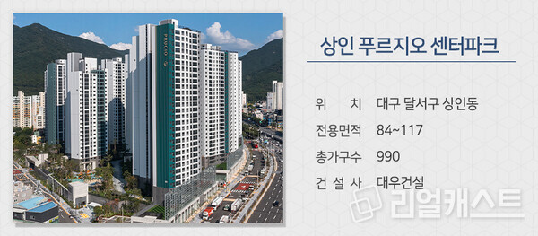 대우건설은 대구 달서구 상인동에 짓는 '상인 푸르지오 센터파크'를 분양합니다. 준공 후 분양 단지로 입주가 빠릅니다.