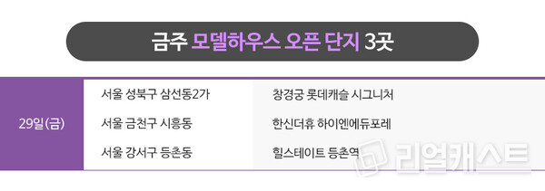 금주 모델하우스 오픈 예정 현장은 총 3곳으로 모두 서울에 위치합니다.