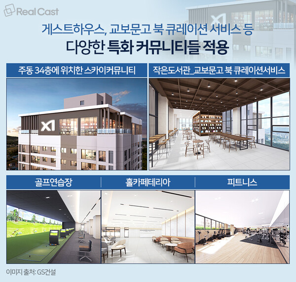 입주민들을 위한 차별화된 커뮤니티들도 수요자들의 관심을 끌고 있습니다. 대표적인 것은 단지 주동 34층에 위치한 스카이라운지인 ‘클럽 클라우드’ 입니다. 주변 경관을 내려다 볼 수 있는 개방감을 갖춰, 입주민들에게 차별화된 경험을 선사하고, 일부 브랜드 아파트를 제외하면 조성도 드물어 희소성도 높습니다. 서울도 강남 등 일부 고가 아파트의 핵심 시설로 자리잡았을 정도입니다.