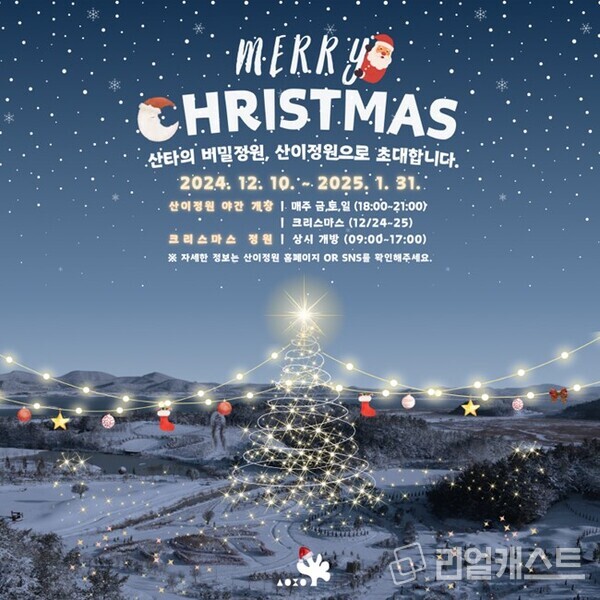 보성그룹이 해남 솔라시도에 개장한 산이정원이 오는 12월 10일부터 2025년 1월 31일까지 크리스마스 시즌과 신년을 맞이하여 특별한 야간 개장을 진행한다.