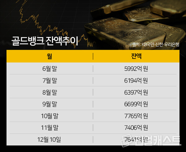 실제로 지난 10일 기준 골드뱅킹의 잔액은 11월말 7406억 원과 비교하면 3.17%가 증가한 수치입니다.