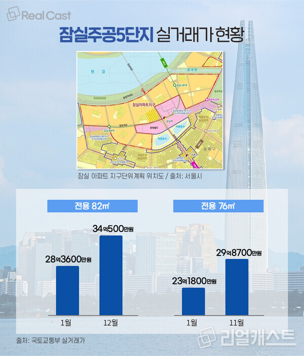 재건축이 본궤도에 오른 데다 지하철 2·8호선 잠실역 역세권 입지에 얼마 남지 않은 한강변 대단지라는 점에서 잠실은 물론 강남 부동산시장을 이끌 대장주로 평가 받고 있습니다.