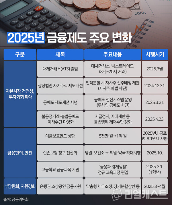 금융시장이 올해 큰 폭의 변화를 앞두고 있습니다. 작게는 예금보호한도 상향도 있고, ‘자사주 마법’의 차단이나 대체거래소 출범 같은 굵직한 이슈도 있죠. 올해 금융 환경은 어떻게 바뀌는지, 중요 이슈를 중심으로 정리해봤습니다.