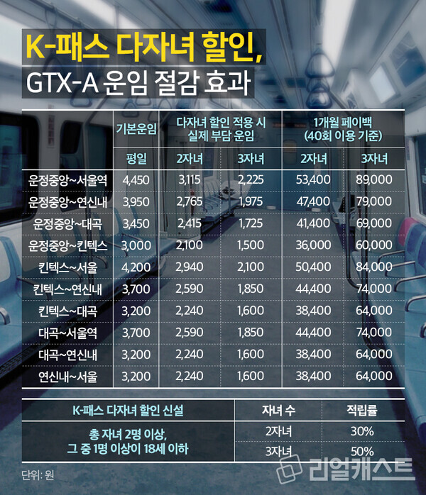 K-패스 다자녀 할인 신설, GTX-A 할인 효과는?