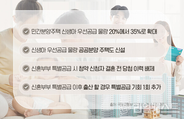 신생아 우선공급 비율 확대, 신혼특공 결혼 전 당첨이력 배제 등
