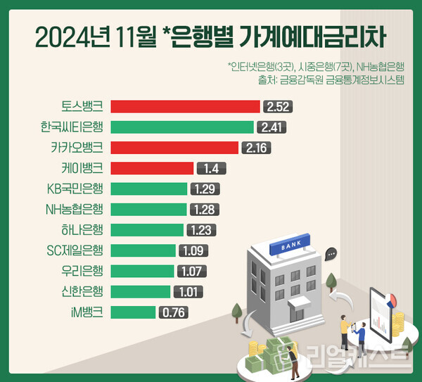 인터넷 은행 가계예대금리차, 11월 평균 2.02%p