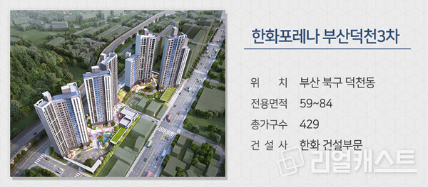 한화 건설부문이 부산 북구 덕천동에 짓는 ‘한화포레나 부산덕천3차’를 분양합니다. 도보권에 부산지하철 3호선 숙등역과 남산정역이 있는 역세권 단지이며, 만덕3터널을 통해 부산진구 등으로 이동이 쉽습니다. 덕성초, 덕성중, 낙동고 등을 비롯해 숙등공원, 금정산, 백양산 등도 가깝습니다.