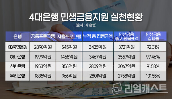 이중 KB국민은행은 작년부터 현재까지 공통프로그램 2890억 원과 자율프로그램 545억 원 총 3435억 원의 집행을 완료했습니다.