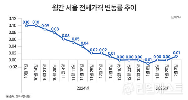 서울 전세시장이 2월 첫 주 플러스 변동률을 기록하며 지난 12월 중순 이후로 상승을 멈춘 이후 8주만에 상승 전환됐다.