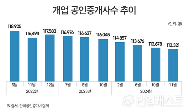 한국공인중개사협회에 따르면 지난해 1~11월 전국에서 휴·폐업을 한 공인중개업소는 1만3,077곳으로 신규 개업 공인중개업소(9,401곳)보다 약 3,600곳이 많다.