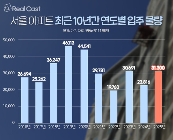 올해 서울 입주 물량 3만1,300가구, 2020년 이후 가장 많아