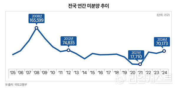 전국 미분양주택 7만173가구…2012년(7만4,835가구) 이후 최대