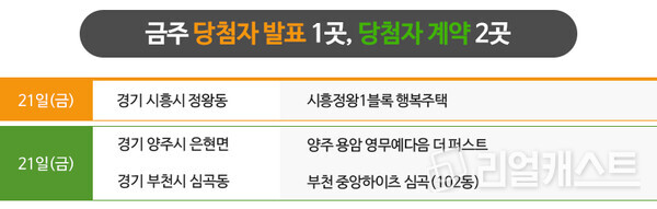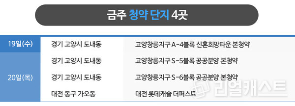 금주 분양시장은 3기 신도시인 경기 고양시의 고양창릉 신도시 신혼희망타운(1곳), 공공분양(2곳), 신혼희망타운 등 수도권 3곳을 비롯해 대전 동구 물량 등 총 4곳입니다.