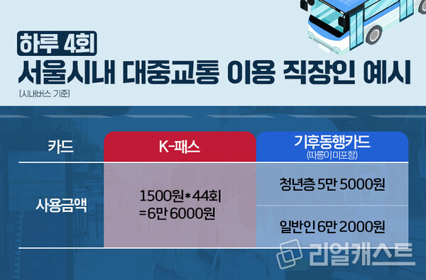 이렇다 보니 기후동행카드와 병행해 사용하는 것이 유리할 수도 있지 않을까 생각하는 분들을 위해 리얼캐스트에서 상황을 비교해봤습니다.