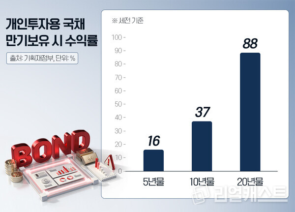 기존에 발행하던 10년 만기와 20년 만기 개인투자용 국채는 각각 500억 원, 100억 원어치도 같이 판매에 나섭니다. 만기 보유 시 수익률은 각각 37%, 88%(세전 기준)입니다.