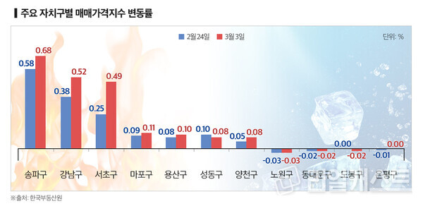 송파구는 0.68% 상승해 지난 2018년 2월 1주(0.76%) 이후 7년 만에 가장 높은 상승률을 기록했다.