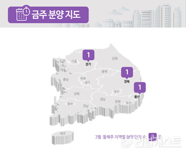 부동산인포에 따르면 3월 2주 전국에서 신규 청약 및 입주자를 모집하는 곳은 3곳, 총 1205구로 집계됐습니다(총 가구수 기준).