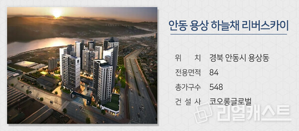 경북 안동시 용상동에서는 한국토지신탁이 시행하고 코오롱글로벌이 시공하는 '안동 용상 하늘채 리버스카이'가 분양합니다. 단지는 용상동 일대에서 가장 높은 층고로 펜트하우스와 일부 세대는 테라스 설계를 적용해 차별화했습니다. 선어대공원과 용상낙천공원 등 쾌적한 주거환경을 갖췄습니다.