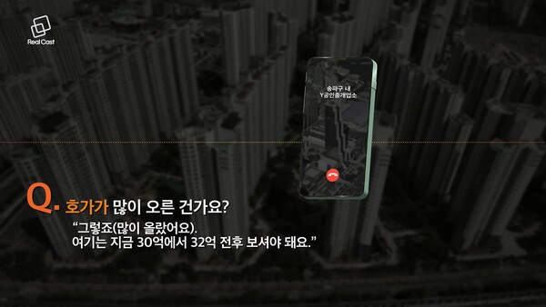 “(트리지움 33평의 경우) 30억대 보셔야 돼요. 그렇죠(많이 올랐어요). 여기는 지금 30억에서 32억 전후 보셔야 돼요”