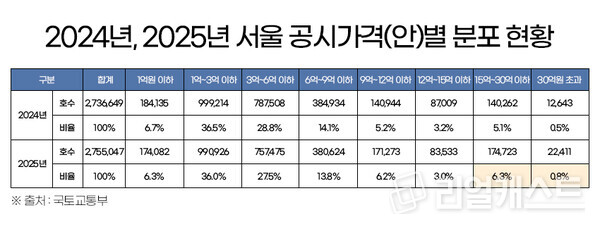 한편, 2025년 공동주택 공시가격은 3월 14일(금)부터 4월 2일(수)까지 소유자 열람 및 의견청취를 실시한 후 중앙부동산가격 공시위원회의 심의를 거쳐 4월 30일에 결정·공시한다.