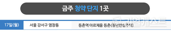 청년안심주택(민간임대) 1곳에서 입주자 모집을 진행하고, 일반 분양 물량은 없습니다.